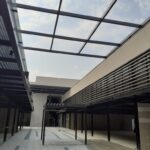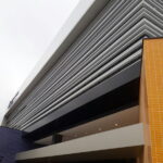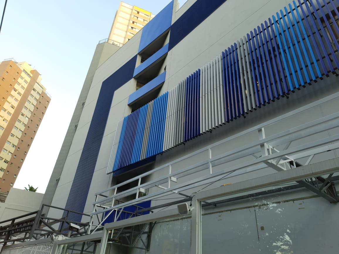 Sistema compuesto por paneles de sección rectangular, lo que garantiza un acabado perfecto en todas sus caras. La instalación del Cortasol lineal Metálico QB es sencilla y eficiente. Están fabricados en aluminio prepintado con esmalte de poliéster mediante el proceso de alta tecnología Coil Coating, aliando durabilidad y diseño.